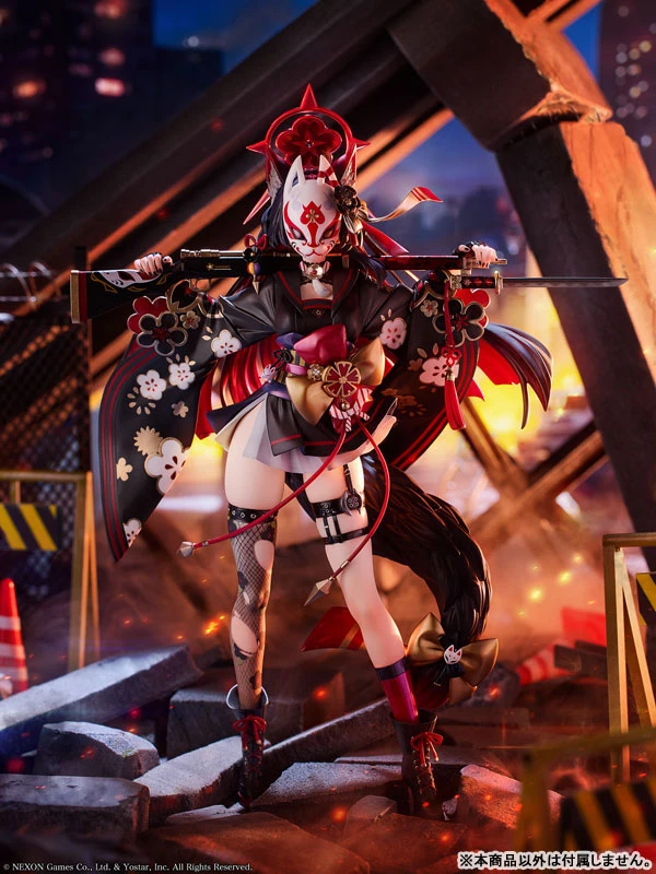 Wakamo is instantly recognizable by her distinctive fox mask. In the game, she’s always wearing a mask, changing it depending on her mood. This figure captures that aspect by offering a removable mask feature. Alongside her regular, sharp expression, a heart-eyed face part is also included—letting you experience both her madness and affection in one figure. This contrast is a key part of Wakamo’s character and contributes greatly to the figure’s intense appeal.