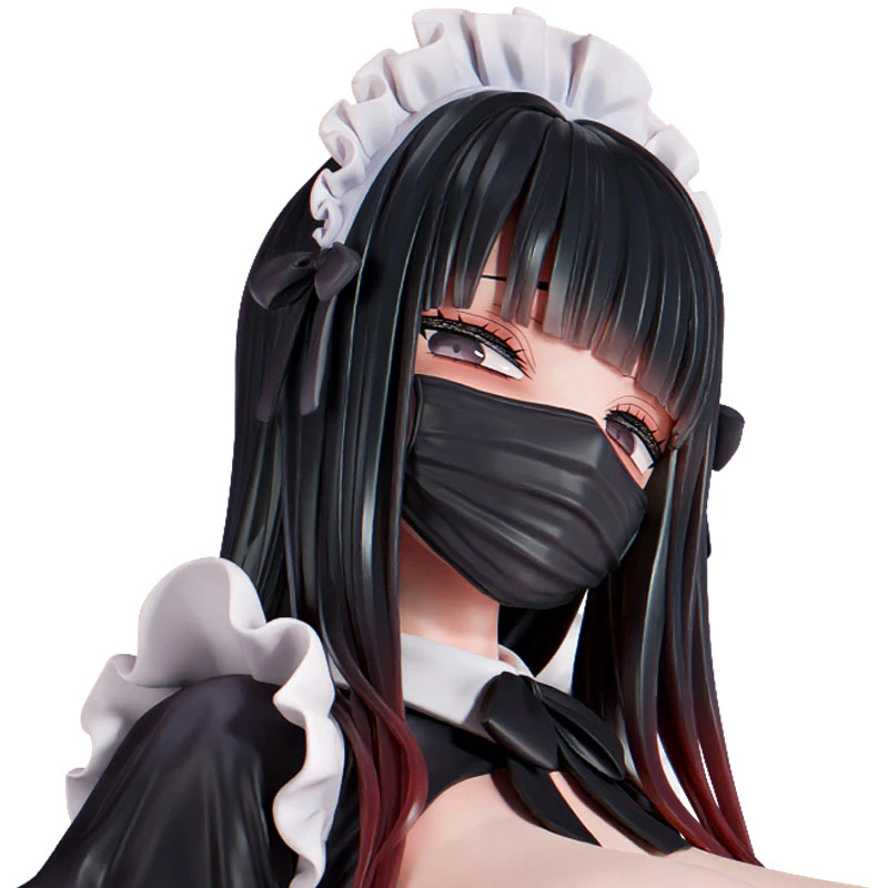 Despite using the classic motif of a maid outfit, this figure reveals a new charm that combines sensuality with a sense of cleanliness. The sexy black-based design further enhances the tones of her skin, while the lace and ruffles, meticulously crafted down to the fine details, significantly heighten the realism. Pay special attention to the lines where the texture of the fabric meets the contours of her body. Hidden there is not just visual beauty, but a powerful quality that makes you feel ”she is really there.”
